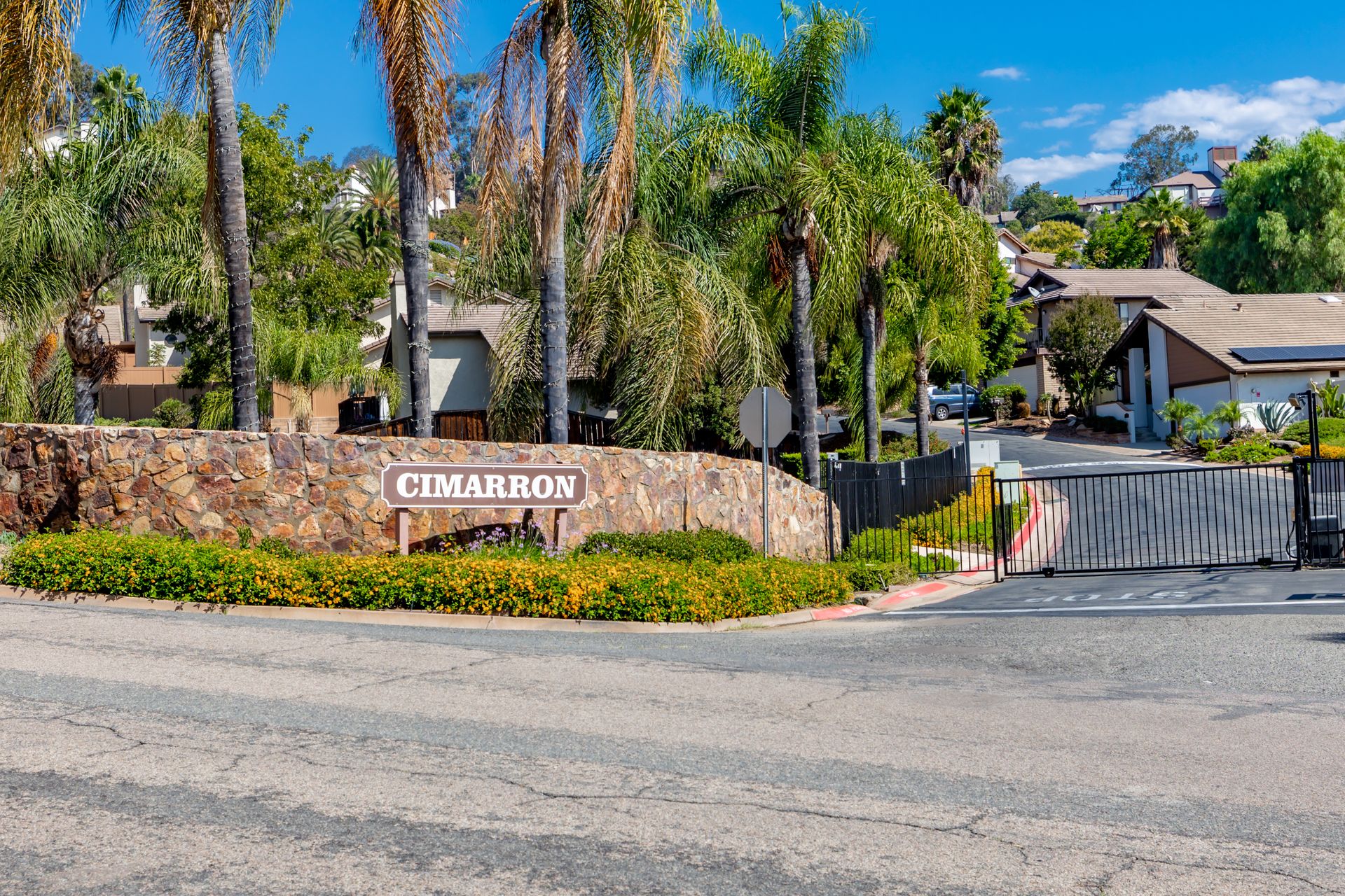 This 2 bd/2 bath home is situated on a premium lot within the quiet, gated community of Cimarron. There is a lush private backyard with citrus trees, plus a large deck off the dining/living area that's perfect for outdoor entertaining. Excellent floorplan with open great room, vaulted ceiling and private master suite downstairs. Kitchen has stainless steel appliances and granite countertops. Cimarron amenities incude landscaped paved walking trails, clubhouse, gym, pool, tennis and basketball courts.